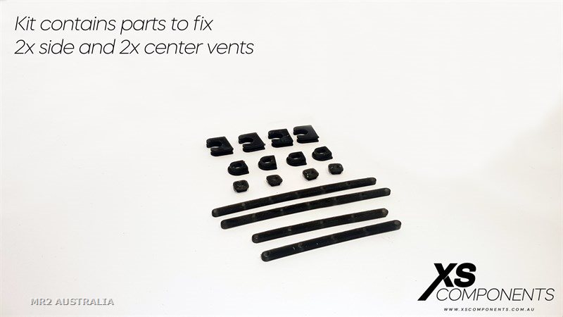 Unfortunately our AC vent assemblies discontinued and second hand units are brittle. This kit includes all the small plastic pieces required to rebuild the vents