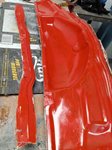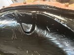 Working on the bulkhead cover today, I decided to mold up the return front edge as factory ones are so it was a quick hot mix of gelcoat and just after lunch I glassed a couple of layers on , being a nice day it was set in about 2hrs so I had a grand plan to start pulling the original cover out of the mold. First the good part, the mold came up great as these pics show