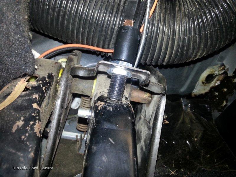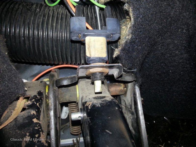 Due to the shorter pedal travel for the carbs the accelerator pedal was sitting a lot lower than the brake pedal making heel and toeing a bit too hard with my large feet (size 13) so I shortened the push rod and then need to space the brake pedal as it kept returning to normal due to the spring. The standard brake light switch didn't have enough adjustment so I bought a new one from super cheap for $10 and it worked a treat. Old switch with not enough length New switch Connected and working How the pedals now sit.
