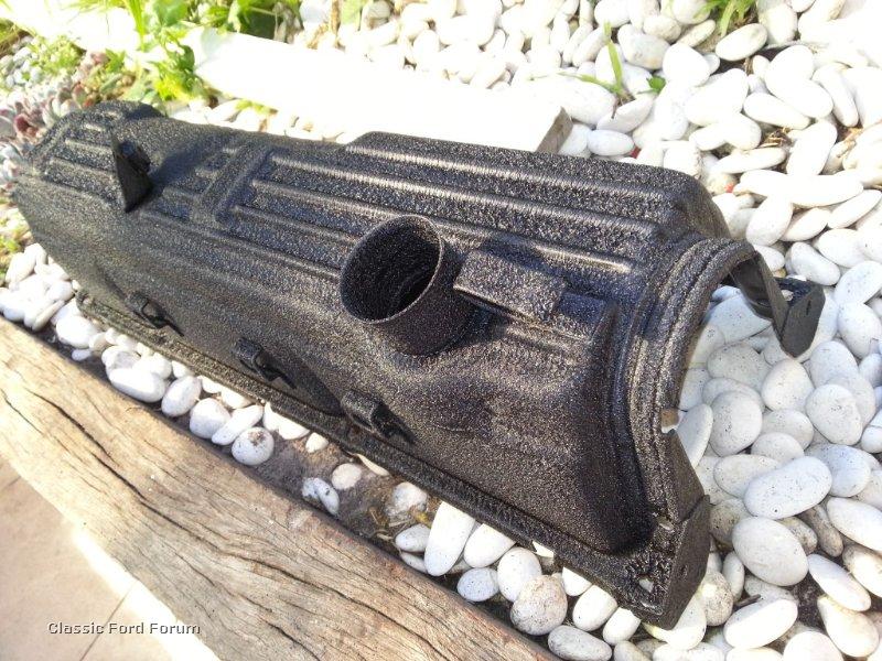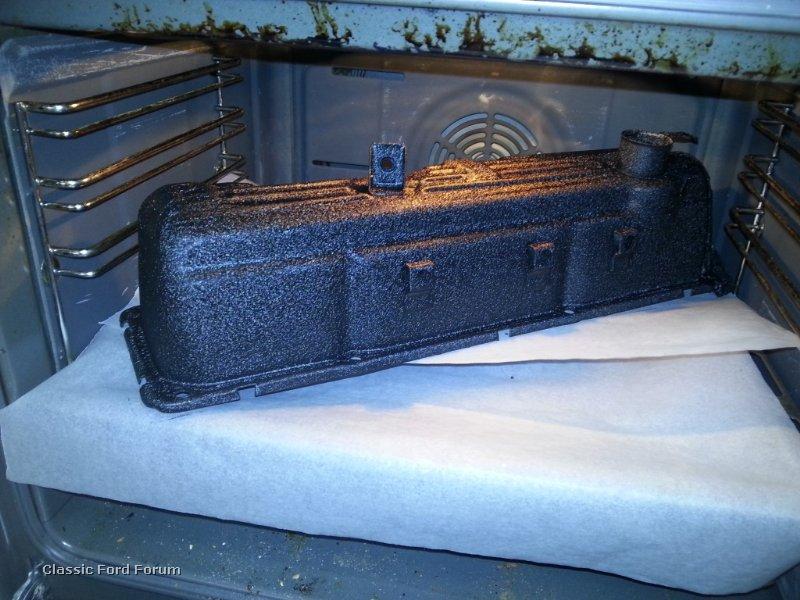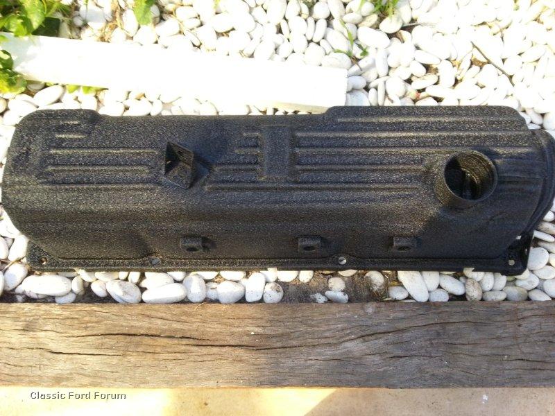 Hi Guys, I wanted to paint the rocker cover something different so I tried VHT's Wrinkle Paint. You put on 3 heavy coats then bake in the oven for an hour at 92 deg. Don't tell the wife. I am very happy and reckon it looks the goods. Took less then half a can too. Cheers, Matt