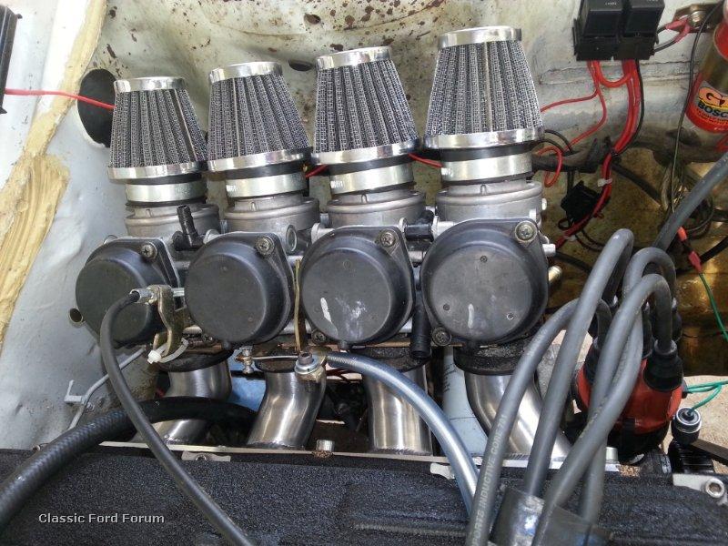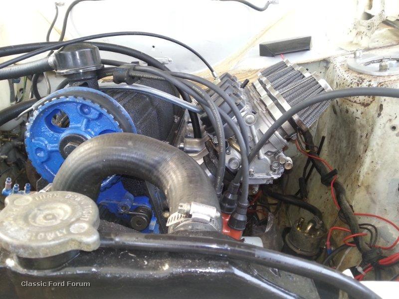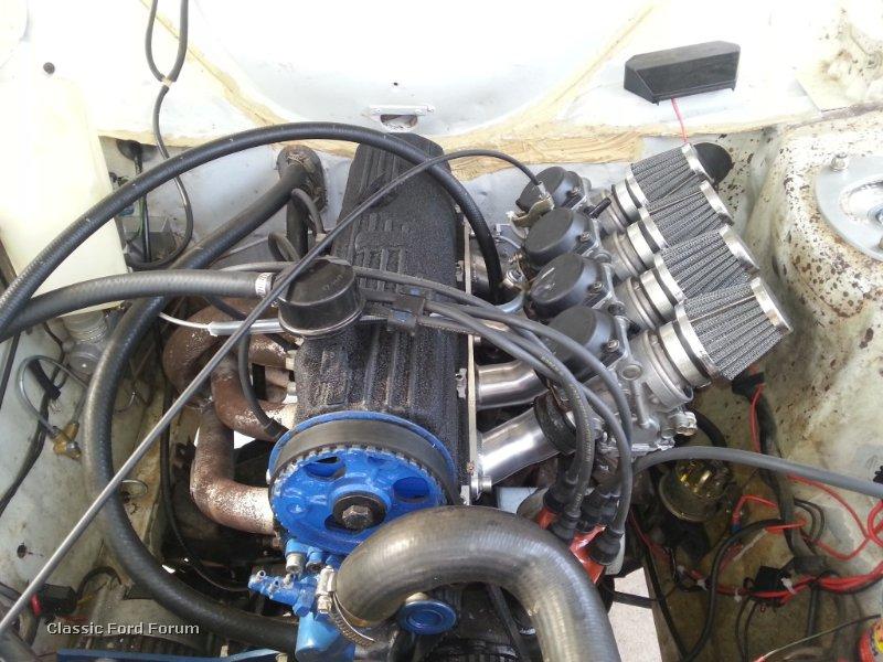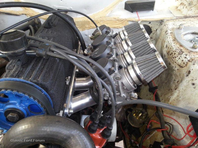 Ratta, Bog Bros were easy to deal with and very nice and helpful guys. They can;t do enough for you. I just rang them and then they said just send an email and then a week later it was ready and I got it 4 days later. Razzle, "Green" tie rods are used when fitting capri struts into a MK2 as the Capri struts have a different taper in the steering arms. They are called "Green" as they used to be green. Very original I know. We have our 3rd child due any day now so I am trying to get as much done now as I am sure I won't have much time very soon. Here is a pic of the manifold on the engine. I hope to get the carbs back on tomorrow. The quality is amazing, I have to say, and I'm a bit embarrassed the rest of the engine bay looks so crap. The angle is a bit more towards horizontal too so they won't stick up as high as before. I have thought about painting the car but I plan to race it so would to fork out $ for a paint job and then smash it. Will have a play with it like this and then I want to build up a proper car this time with 2 doors. Thanks for the comments guys. Cheers, Matt
