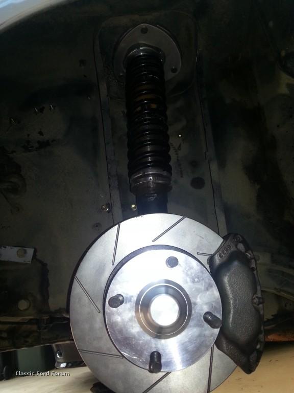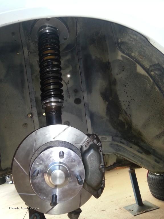 Got 1 strut in today. I would have put the other in too but I am missing a couple of spacers on the strut top so I got some more from K-Mac along with a 22mm adjustable sway bar. There are other types out there that use washers to increase / decrease caster but the K-Mac ones use the threaded with 2 sets of nuts so you can adjust the caster in-situ. I am still waiting on my tie rods, TCA Replacement Rubber Boots and caliper pins and then the front should be finished. My Bogg Bros manifold left the Yoo Kay on Thursday so hopefully that'll be here mid next week too. Next step will be the new rear axle with disc brakes. I can't seem to get the piston back into the caliper to fit the pads. I bought one of those caliper winding tools but it doesn't seem to be working. Oh well, I'll cross that bridge later. Couple of pics. Cheers, Matt