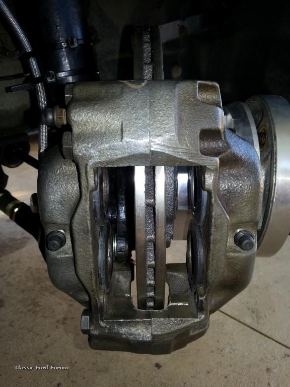 Here's some pics of the calipers swapped over (  ) and how they are centered using the hardened washers. Nearly there, just need to find out which order the bleed the caliper nipples in. Cheers Matt