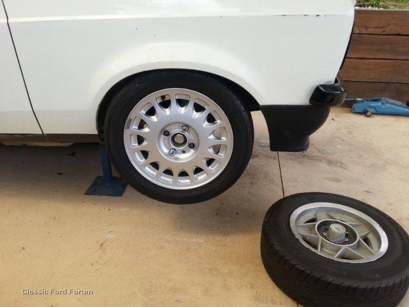 Fitted the wheels back on (15" & 13" rims) just to get an idea of how much room I'll have and there is not much. I haven't fitted the sway bar yet either. It has been posted today. The alloy hubs increase track by 10mm and I have 20mm spacers as well. The springs are 275lbs so they won't compress much and I will increase the camber too so it should be fine. Cheers, Matt