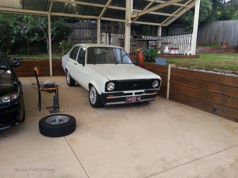 Massive thanks to Mish who popped over today to help get me sorted. The car is on it's wheels now and all I have left to do is bleed the brakes and work out how to do up the shock absorber nut as it keeps spinning when I try to do it up. Even when the car is on it's wheels. The car is very low now and the back of the car looks like a mare waiting for a stallion! Cheers, Matt