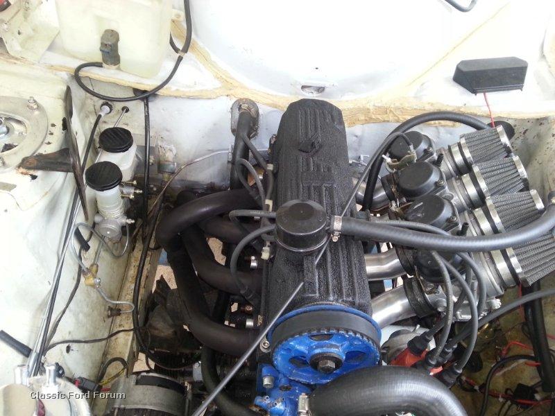 After a few full on days it is pretty much read to go. After we got the front alignment nearly right I went to bleed the front brakes. The top bleeder outlet on both caliper was blocked up solid so i borrowed a compressor (I really really want one now) to blow it through but that didn't work either so i had to remove both calipers and using a drill bit and some pliers to screw down into the crud and once a hole was made use the compressor to blow all the crap out. Worked a charm. So i bled the brakes today and then painted the extractors and rerouted the heater pipes under the exhaust to make it look a little neater. I just need to do up the top nuts on the shocks and raise the ride height a little (it's too low to get off the jack) and then get a proper wheel alignment. Big thanks to GDub & Mish for their help in helping me out when needed. Here's a few pics of the engine bay now the exhaust is painted and hoses rerouted. Cheers, Matt