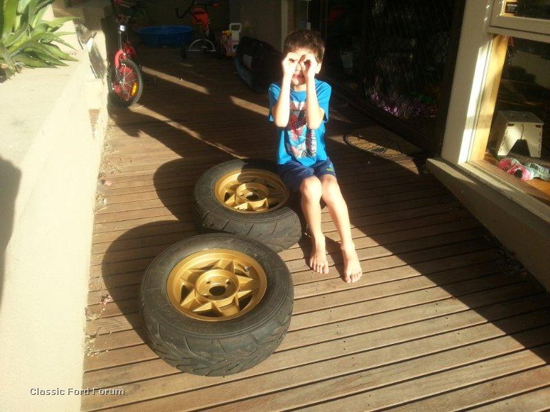 Hey Mish, That's true, Murphy's law says that I'll will just get the old springs back in when the new ones arrive. Anyone got some lowering blocks I can borrow for a few weeks? Is it all down hill to Williamstown from your joint or will you trailer it there? Cheers, Matt Couple more of the wheels
