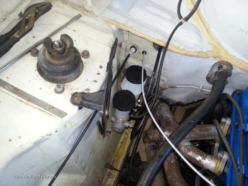 This weekends project is to mount the 120y M/Cylinder against the firewall. I took off the original booster bracket and M/C and it now looks like this. (the nut nearest the body was a real C^%T to undo) More to come tomorrow hopefully. Matt