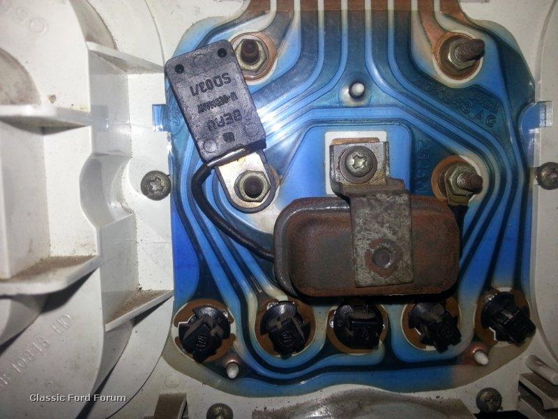 So, I ended up getting the tank after all on eBay for $15. Whether I put it in or not I'm not yet decided but it was cheap so no biggie. Given the difference between the resistance of the Gemini sending unit (0 -90 ohms) & the Escort (73 - 10 ohms) do I just need to get a different voltage regulator for the dash at the required Ohms and all is good? And is the regulator the little black dealie in the photo below? Cheers Matt