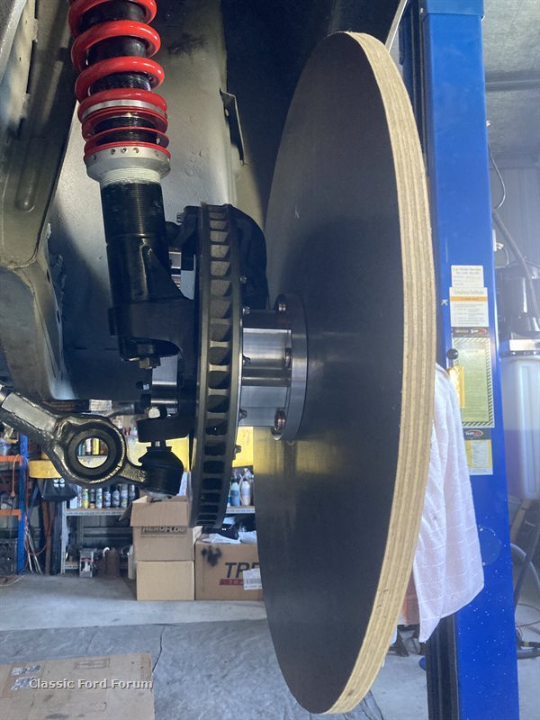 I love the look of those torsion struts, apparently they're perfect for escort track cars, and those brakes too! I like the board idea, lets you settle the car to ride height and really dial everything in - might be a bit sketchy with a fully loaded car though!