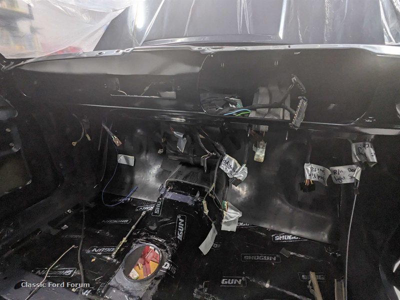 New seals in, bearings are packed, calipers are buttoned up and that is everything ready to go minus brake pads. I had a bit of extra time today so started the process of putting the heater box back in. As I said once I started putting in bits it's pushed the firewall blanket material right up against the firewall which is great. I also have started the process of neatening up the wiring loom under the dash - even for a simple little car there is a fair bit of spaghetti to tame.