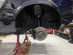 Got the hubs back from the machine shop and I think we are cooking with gas now. Plenty of clearance for activities now, a stone could still get jammed up in there but I think that would always be a possibility. On the weekend I will pack up the bearings, chuck the seals in and button it all up then it will be on to the brake lines. And of course you can't have a hub on without test fitting the wheel.... It really shows how far the caster is pushed forward  .