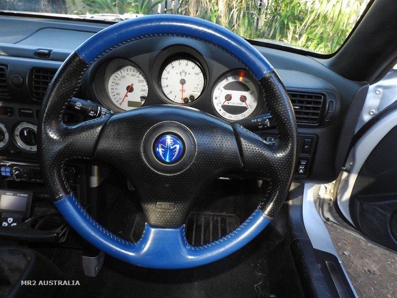 PPE Header - Have to wait a fortnight for Exhaust Man to return and fabricate the rest of a system, then dyno to see if there's any improvement. So far: Toyota MR2 Spyder 2000-2007 Convertible Top, Blue Stayfast, Glass Window. All toyota badges replaced with Midship Runabout Eagle emblems SMT to Manual conversion Solid bush shifter kit Rolled 2005 Corolla Sportivo bought for 2ZZ and Transmission MWR RH Engine mount Serpentine belt For C64 Sportivo: MWR Reverse Blockout MWR .725:1 Sixth gear set MWR Shifter shaft for Corolla trans LSD added to box Lift bolts (Toyota says "Flange bolts") JDM Celica ECU Modified wiring harness Modified Corolla/Celica headers Fabricated Cat/Exhaust Engineer approval (so third Party insurance valid) Speedhut 10,000rpm Tachometer CEIKA Coilovers RPF1 Rims RDA brakes - Slotted & Dimpled Replacement Rotors, FRONTand REAR All calipers reconditioned. SS braided brake lines New facelift air scoops - side β Blue Power FC ECU Due to "gudgeon noise" in motor, bought another 2ZZ - 9000km Celica motor and C60 transmission. Another MWR shifter shaft (different to Corolla C64) MWR Reverse blockout MWR Carbon lined synchro set. LSD added to box PPE headers