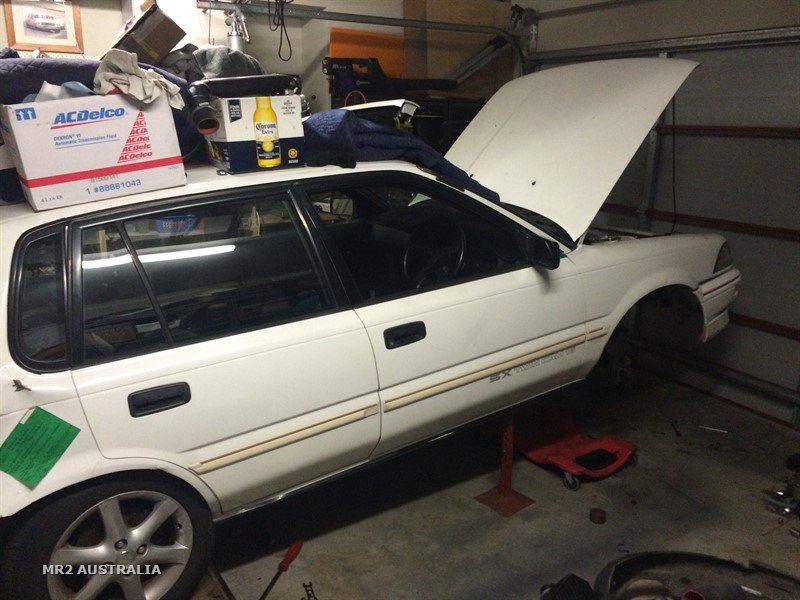 Did you ever have a project that just kind of escalated? Over the weekend I bought a damaged AE93 Corolla SX - the previous owner had spent a fortune building the ultimate sleeper and fitted it with... A rebuilt smallport GZE all reciepted with new stock pistons, HKS valve springs, all the ARP hardware and cam tech cams Fidanza cam gears Haltech PS1000 tuned for e85 575cc Bosch Xspurt injectors Garret gt2871r on a custom manifold with separate turbo smart wastegate. 3 inch exhaust with remote Xforce varex muffler Massive front mount completely concealed behind the grille LSD e58 rebuilt with receipts A heavy duty Jim Berry clutch A spare 2 week old Tilton/MRP twin plate race clutch and flywheel that was too aggressive for street. Dyno sheet for 228kw atw BC Racing coil overs The car was a nice and clean SX hatch until it was rear ended hard by a speeding p plater.
