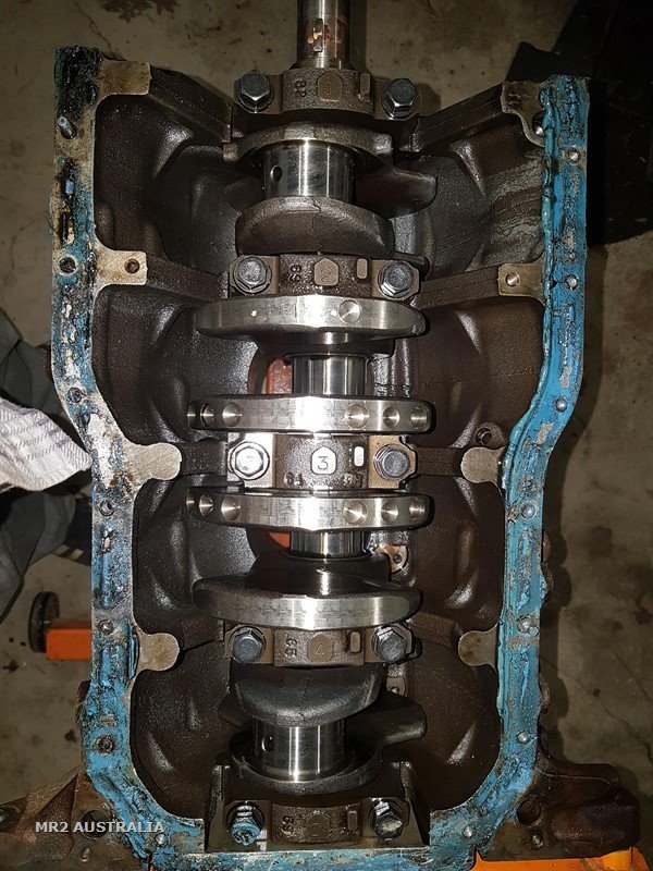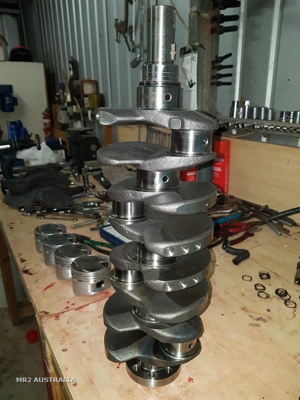 Block out and striped ready for the machine shop they machine out to 87.07 mm with a torque plate, Then order new 87mm Wiseco pistons ands rings.    A pic of the new crank that was in it.  Next job is to re balance new pistons when I get them.