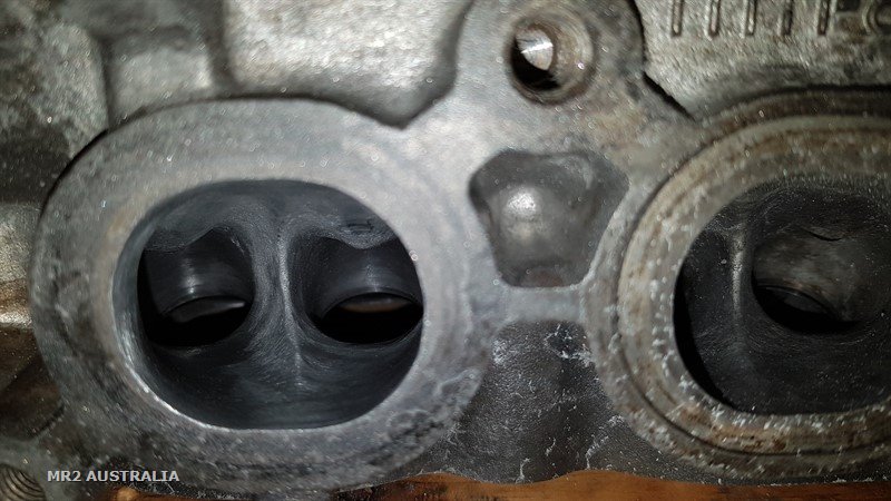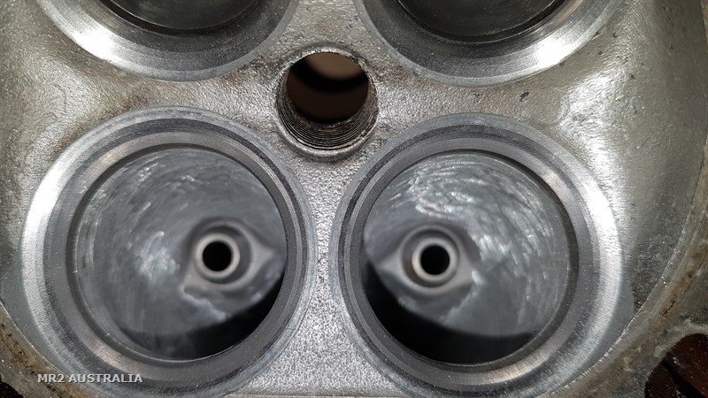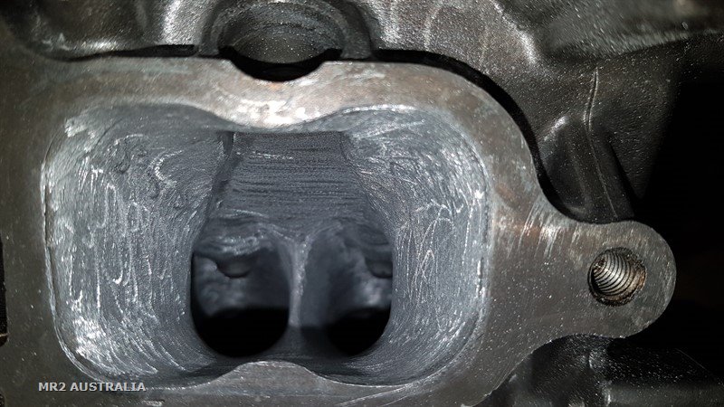 Had to buy an other 3sgte head as it was to soft due to overheating. I practice porting on the old head. Here are photo of my porting on the new head. Seats have been enlarged for 1mm oversized Valves. Once porting is finished, back to shop for head facing etc. Before and After It's not smooth for a reason. It will increase power as it will created more turbulence mixing fuel in the chamber better. Before intake  After intake  Before intake  After intake  Exhaust Before  After this is smooth done with 80 grit  exhaust before  Exhaust after 80 grit