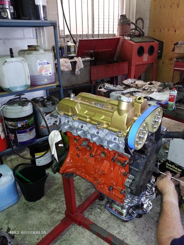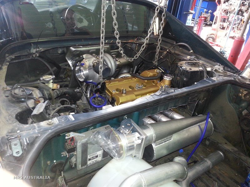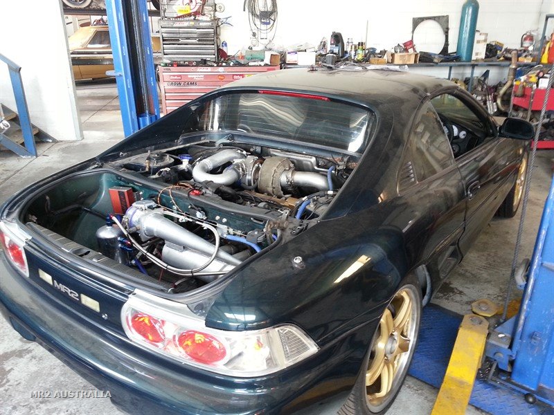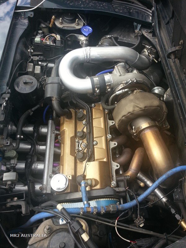 Hi All Been waaaayyyy too long since i've been on here... But I'm sure you guys will be very interested in the MR2 now... So after quietly accumulating parts and getting defected a month before getting the car to the workshop (located 600k's away from where I got defected... another story for another time...) I got to work on the MR2 and it's looking rather special now as we move into the tuning stages I might split this up into 2 posts cuz theres alot haha. OK, What's been done? well what hasn't? The cylinder head was the first part to be tackled: Gen3 3sgte head (blueprinted and components cryotreated) - Shimless Buckets out of 2zz - Jun undersized titanium Retainers - Jun Valve Guides - 1mm OS Intake valves - GSC Beehive Valve springs - Brian Crower S3 Cams - Adjustable Cam Gears - Porting work to the intake/exhaust - ARP Studs I originally wasn't going to touch the bottom end... then we took the head off and saw slight wear on the bore... enough of an excuse as needed to strip and rebuild the bottom end as well... the owner of the workshop believed mark was due to improper cleaning of the bore from a previous rebuild... it passed the white rag test when I was done with it... The Bolt on's list sounds nice, looks nice, smells nice.. - Borg Warner EFR8374... and the 3 year wait that went with it when I was informed the american indy car teams got them in precedence to me who had pre-paid for it... thankfully the aussie dollar was really good back then. - Custom made twin-scroll exhaust - Custom made tapered intake manifold - Custom Air/Water Intercooler - Custom pipework... much pain to be had here as you will see - After-market radiator Fuel System upgraded to handle pretty much any power i ask of it now... the ID's I got max out at 3700cc's... It was fun making it idle, so made the choice to run it exclusively on E85, and running 17.5 volts to the injectors to get the idle nice... it's very nice now idles like a stocker haha. - Top Feed Fuel Rail - ID 2000cc injectors - Sard FPR - 2.5L Surge tank - Bosch 044 external pump - Replaced all hoses with biofuel compatible ones save the in tank pump... will be changing that in short order I think. Oil System was modified as a... preventative maintenance measure... now an oil cooler where the intercooler would usually be found... the thermo fan there for backup. On a separate note the exhaust manifold necessitated the requirement to make a custom dipstick... what a pain that was... Also replaced the CV's with the ATS racing ones... gotta pull them apart as I think we did them wrong as evidenced by the "clunk clunk" when turning left when any amount of load is applied... straight line however is fine so dyno testing was able to be done. I previously mentioned I had the wolf V500... Wolf were nice enough to upgrade me to the V550 when I found out they brought it out. We haven't done it yet but gonna put a clutch switch in and set up launch control and anti-lag and ignition cut on it... can't wait to see that working, bring on the quick shifting haha. Anyway the build was pretty straight forward save a few choice things like forgetting to prime the oil pump and having to make up a dipstick tube and signal noise With all that said and done we got it running and have starting the tuning process and after a few runs it was putting out over 600nm of torque on 16psi... still got a bit to do yet tuning wise haha! gotta get cams dialled in and then finish the break in before we go into the scary 20's and 30's Anyway piccies coming up next :)